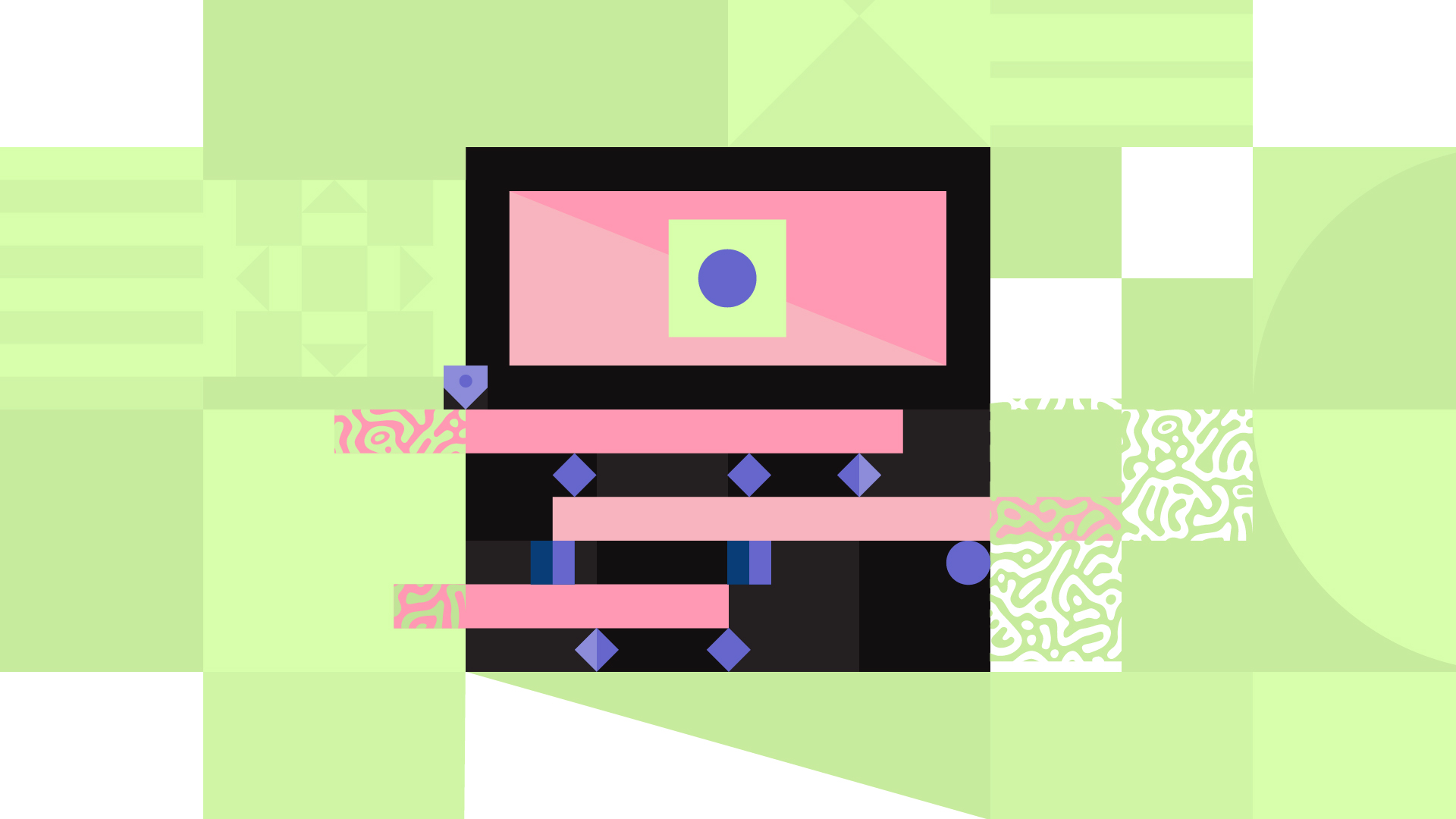 We took the Symposium graphic, deconstructed the elements and made a story from them. We came up with a hero character that travels the path of creative thinking through a semi-abstracted representation of Adobe’s software for the marketing and creative industries.
