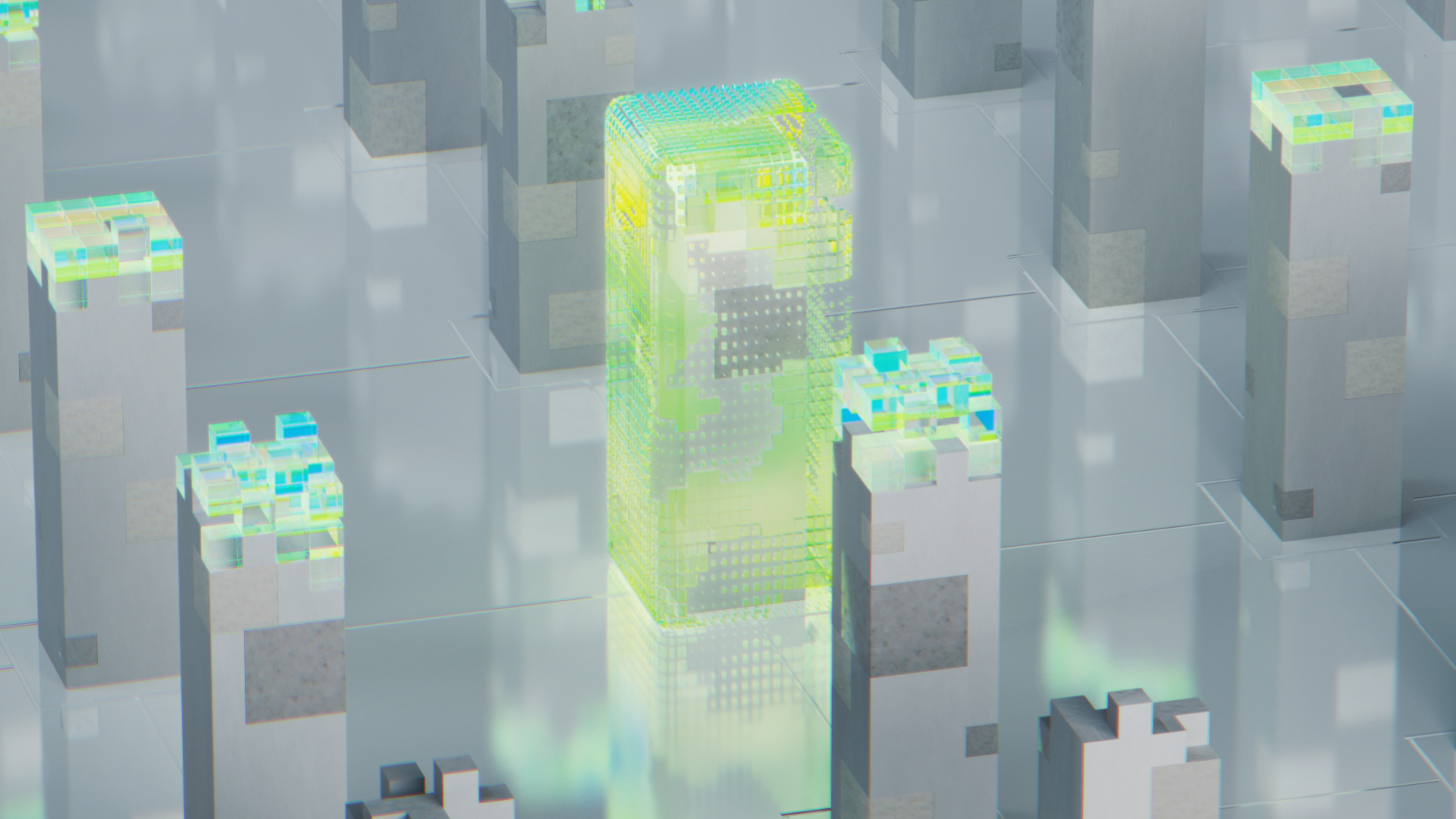 Look development for Digital Finance Representation (DFR) asset used throughout sequence.