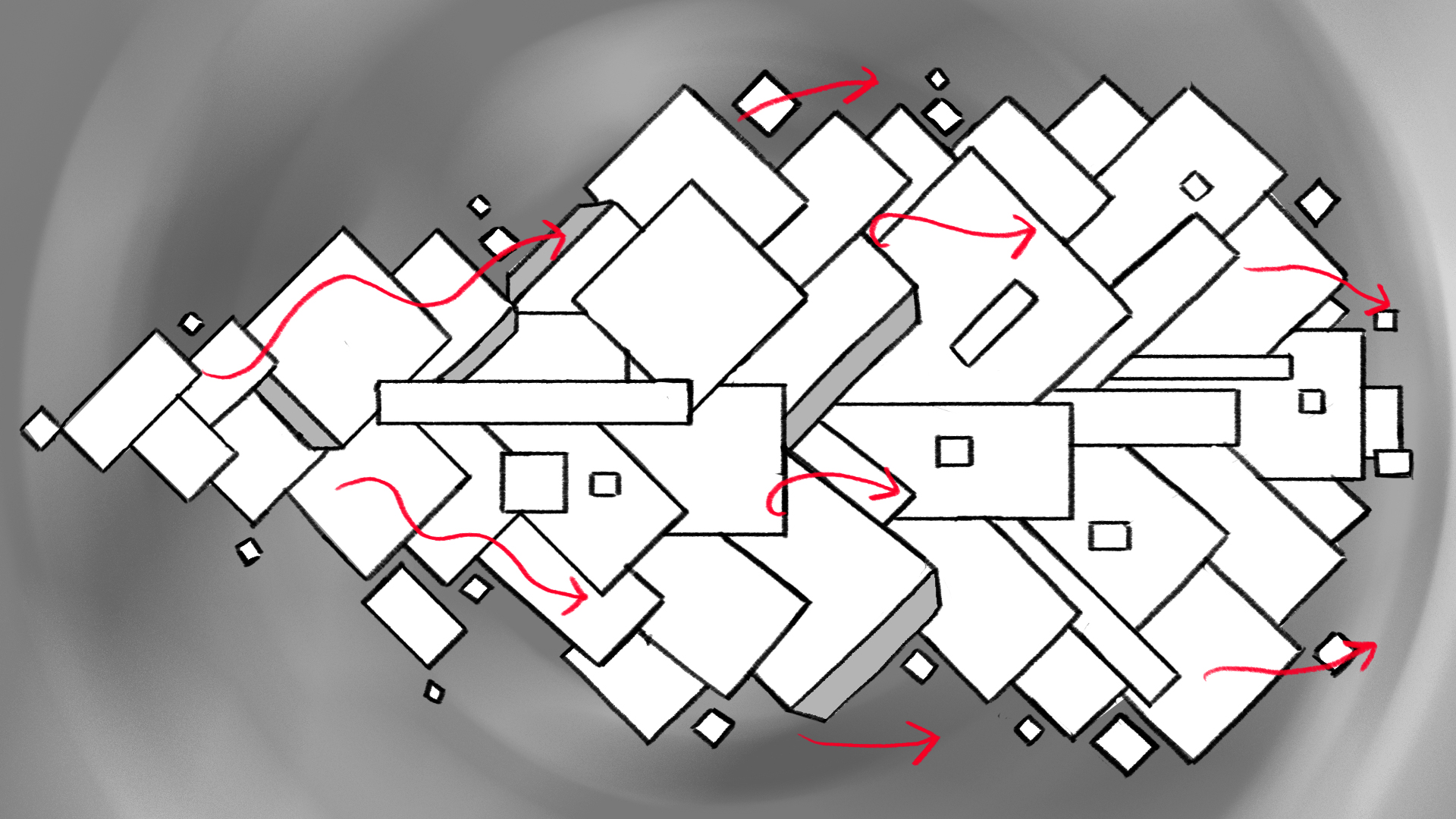 Technical breakdowns of final 3D scenes.