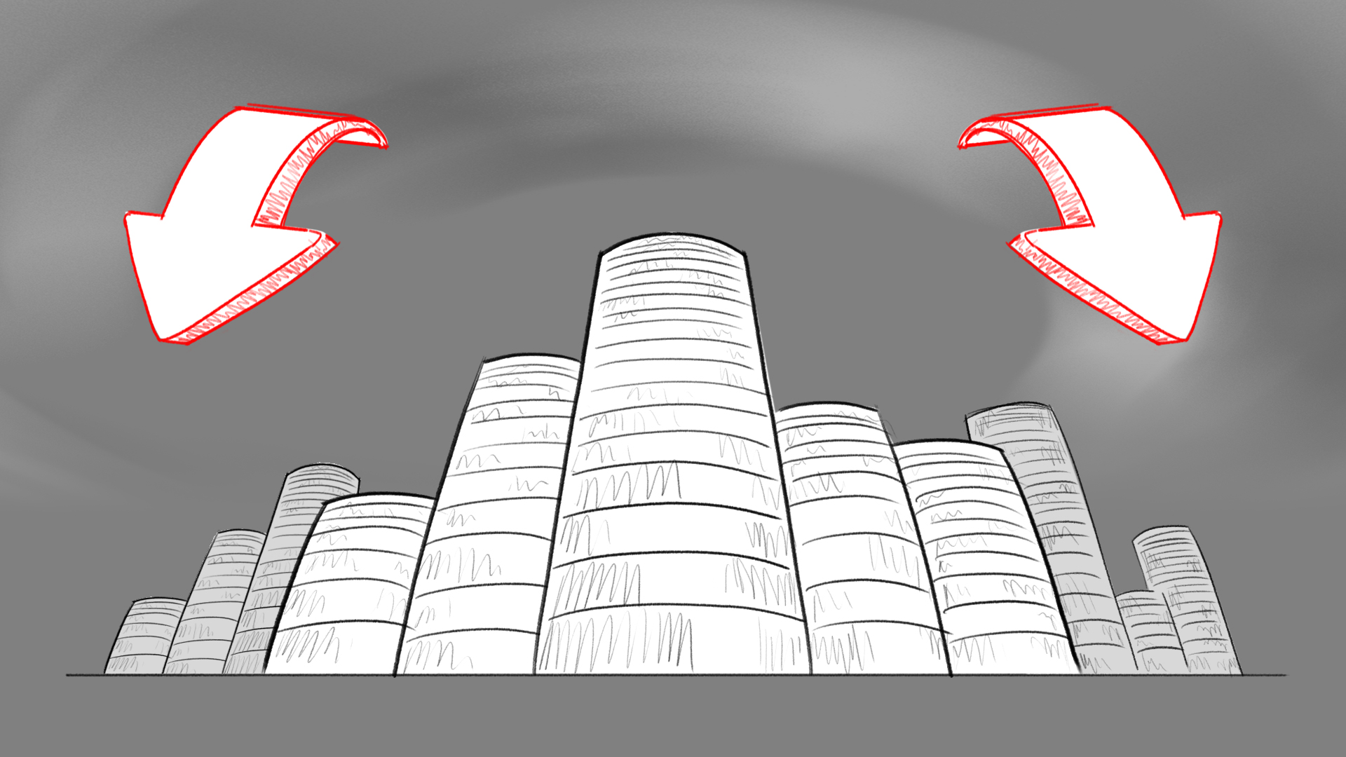 Pencil storyboards from initial concept phase.