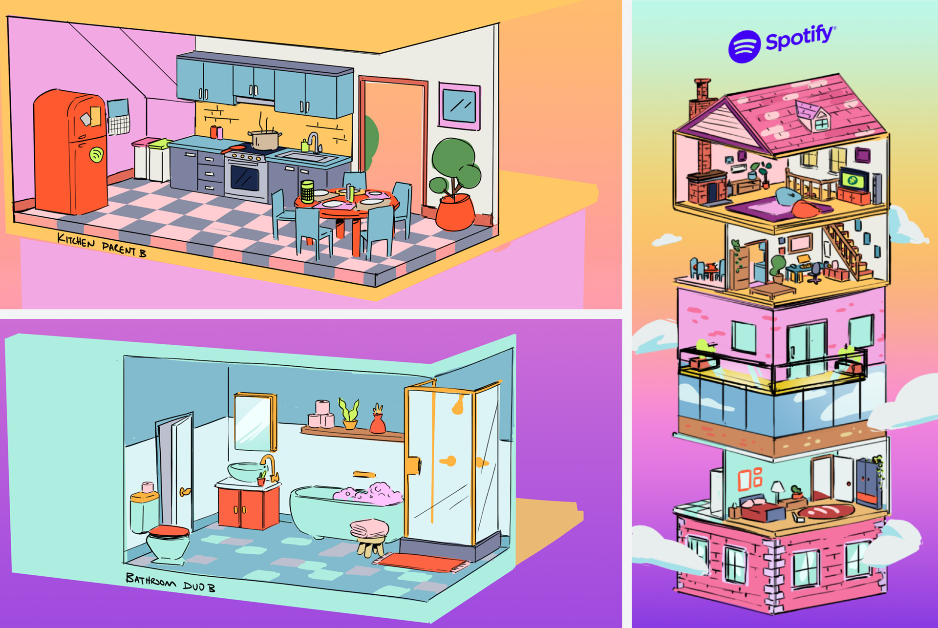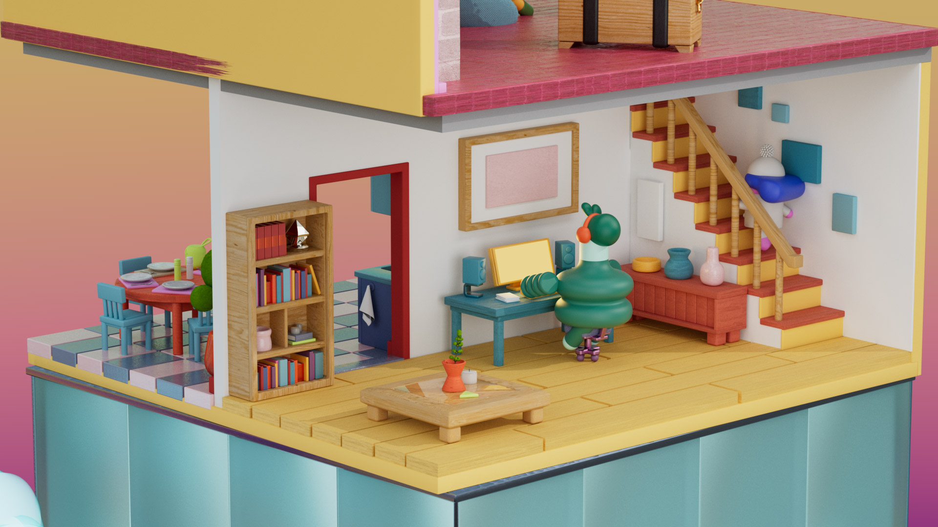 Style frames of diorama rooms.